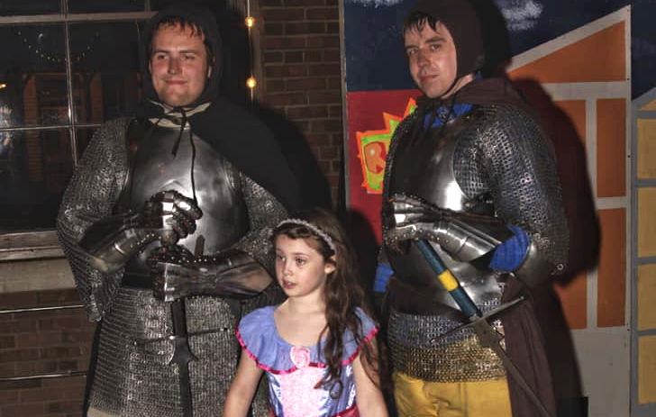 We were invited to attend the Fairytale Ball, hosted here in town by United Cerebral Palsy of Huntsville. We attended as part of the entertainment team – two of our members wore armor and wandered the hall, while the rest of our group talked to the attendees. We also ran a fencing demonstration, showcasing both unarmored longsword sparring and fights in armor with the longsword and poleaxe.