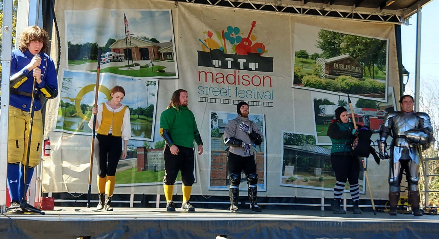 We returned to the Madison Street Festival to walk in the parade and perform a fencing demonstration on the Community Showcase stage. Our demonstration included a sparring showcase featuring bloss longsword systems, as well as an armored duel with longswords, Messer, and spears.