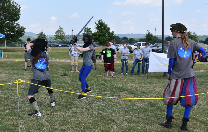 We were invited to attend this year’s Nerd Rummage Sale at Makers Local 256. We spent the morning outdoors, alternating between casual sparring, running educational demos, and grilling burgers for the attendees and vendors.