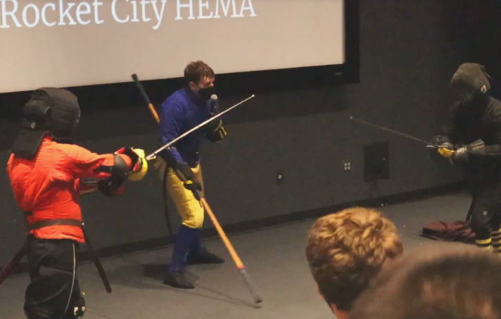 We participated in a demonstration hosted by the HEMA club at The University of Alabama in Huntsville. We introduced a theater full of interested students to the world of historical swordfighting by discussing and demonstrating techniques and sparring with the longsword and the messer.