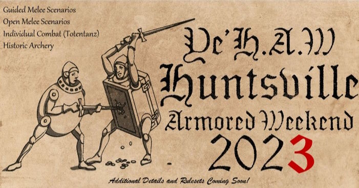 SAVE THE DATE! Rocket City HEMA will return with our fourth Ye’H.A.W. event with mixed Armor as Worn melees and a group fighting experience – this time, with TWO days of melees. Fight in open fields, woods, in a doorway, on a bridge, and under the hail of arrows from our very own archers.